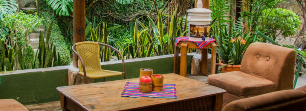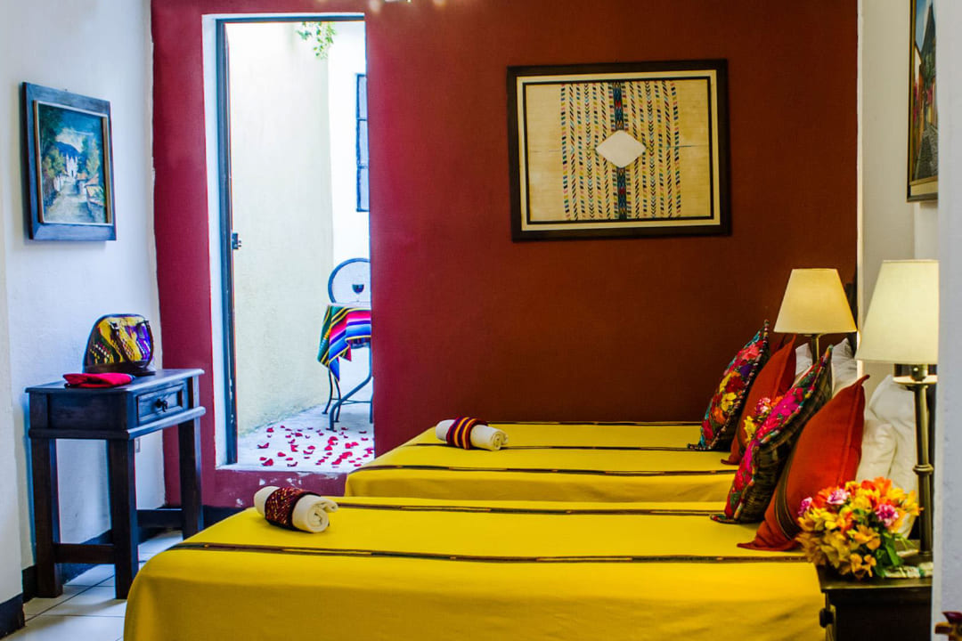 Esto creó un total de 22 espaciosas habitaciones, tres grandes jardines, una terraza en la azotea y muchas áreas de descanso en los espaciosos pasillos del hotel. Dado que nuestro hotel es una propiedad histórica, encontrará muchas antigüedades únicas en todas las habitaciones y pasillos. Tenemos, incluso, una cama hecha en el siglo XIX para el rey Mosquitia de Nicaragua. En otra habitación del hotel, podrá encontrar uno de los candelabros originales de la Catedral y en otra más podrá encontrar una cama que fue propiedad de doña Elvira (quien fuera gobernadora) y una cama que una vez estuvo en la casa del “Santo Patrón de Antigua”, el Santo Hermano Pedro de San José de Betancourt. En nuestro hotel hay tres hermosos jardines tropicales llenos de flores y árboles y muchas zonas de descanso. En este hotel histórico puede sentarse en un exquisito banco antiguo o asombrarse con una pintura de 200 años de antigüedad. Se sentirá realmente relajado escuchando el goteo del agua en nuestras fuentes y apreciando el baile de los colibríes alrededor de las flores.