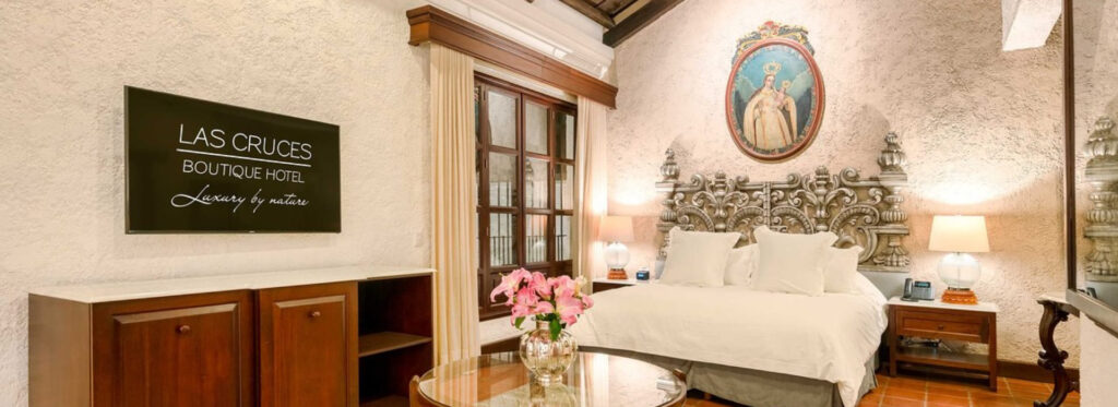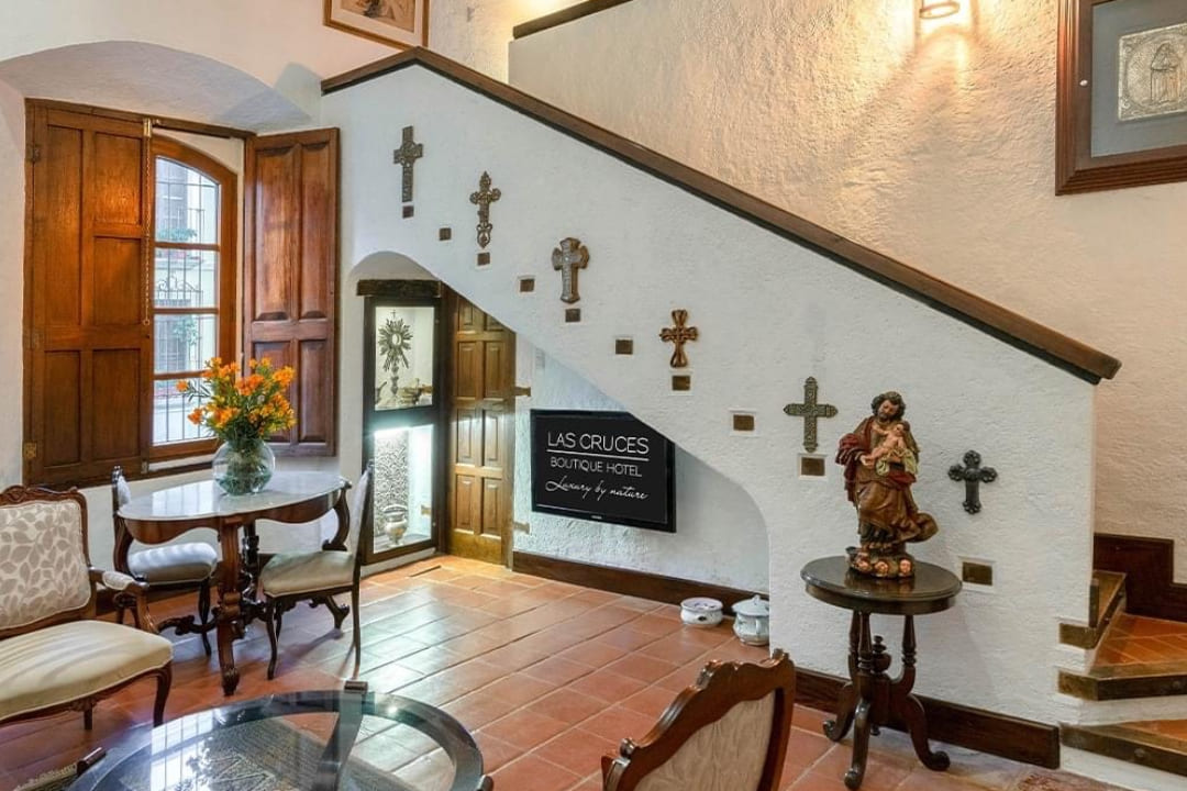 Antigua Guatemala lo tiene todo. Viaje en el tiempo, enamórese, camine por calles empedradas, relájese y experimente toda la armonía del intercambio cultural en la joya de la ciudad más cosmopolita de Guatemala donde podrá pasear por la naturaleza, beber una taza de café DOP único (café de Antigua) mientras contempla el volcán de Agua. La singularidad del Hotel Boutique Las Cruces reside en la ubicación y el confort de última generación, con 11 lujosas y magnánimas suites adornadas con piezas de plata originales del siglo XVII, hermoso patio interior, relajante sala de estar y una encantadora veranda con una increíble vista de la ciudad y los volcanes.